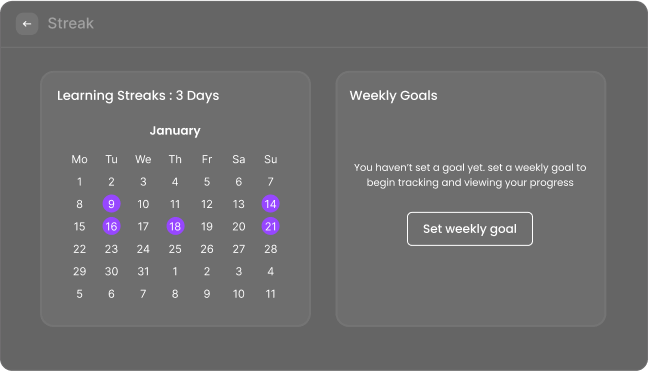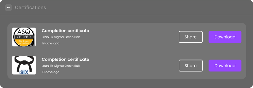 Certificates act as visual rewards for accomplishments, such as completing courses or hitting key learning milestones. This feature makes learning more engaging and motivates users to keep progressing, turning education into a rewarding journey.